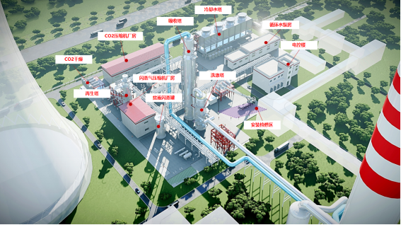 该项目采用化学吸收法工艺,通过特制的CO₂吸收剂将燃煤烟气中的CO₂进行针对性捕集,并通过加热再生的方式从吸收剂中解吸出高纯度CO₂气体。通过层层工艺比选,该装置再生能耗将控制在2.25GJ/tCO₂以内,较传统工艺降低约15%,创造国内燃煤电厂碳捕集技术新标杆。捕集的二氧化碳将用于油田驱油封存(CCUS-EOR),可用于新疆油田增产提效 ,实现“碳捕集—利用—封存”全链条闭环。