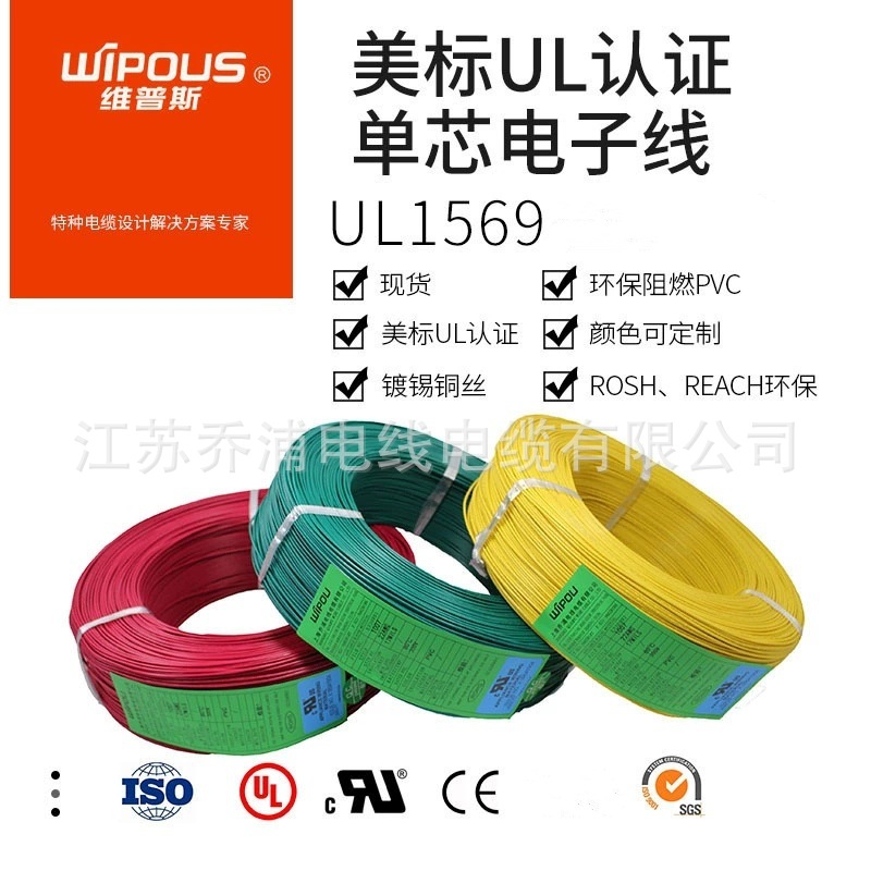 厂家直销 UL1569 18AWG 绝缘PVC 单芯多股软铜丝美标电子线 现货 1卷