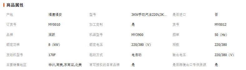 主营: 汽油发电机组 柴油发电机组