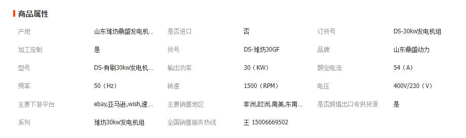 主营: 柴油发电机组 其他发电机 发电机零部件