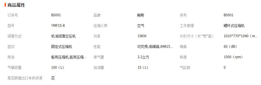 鲍斯15KW永磁变频螺杆空压机 YMF15-8螺杆空压机 更加节能省电 1台