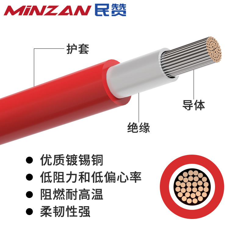 PV1-F光伏直流电缆太阳能电池板专用连接线1.5 2.5 4 6 10 16平方 1米