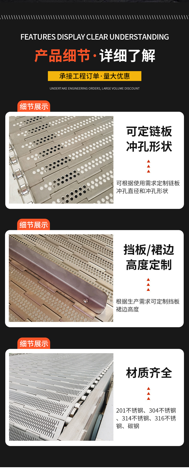 不锈钢链板输送机耐高温加厚板式工业食品物流分拣金属链板输送机