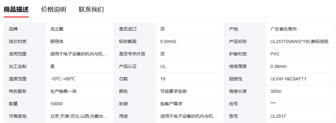 UL2517认证电缆 20AWG 19C多芯护套线 质量保障 1000米