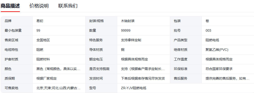 易初品牌ZR-YJV型号阻燃电缆99卷起批木轴封装(面议)