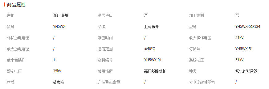 35kV悬式金属避雷器线路无间隙YH5WX-51/134复合绝缘氧化锌避雷器 1只