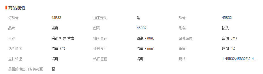 矿山钻头45R32矿用凿岩钻孔锚杆钎头高炉隧道施工台车钻头 2只