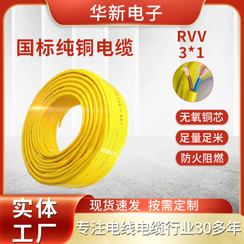 纯铜国标RVV软护套线3芯1平方电源线阻燃防水家装电线 1卷
