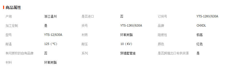 YTS-12KV/630A一体式对接套管欧式伞裙套管高压充气柜环网柜配件 1套