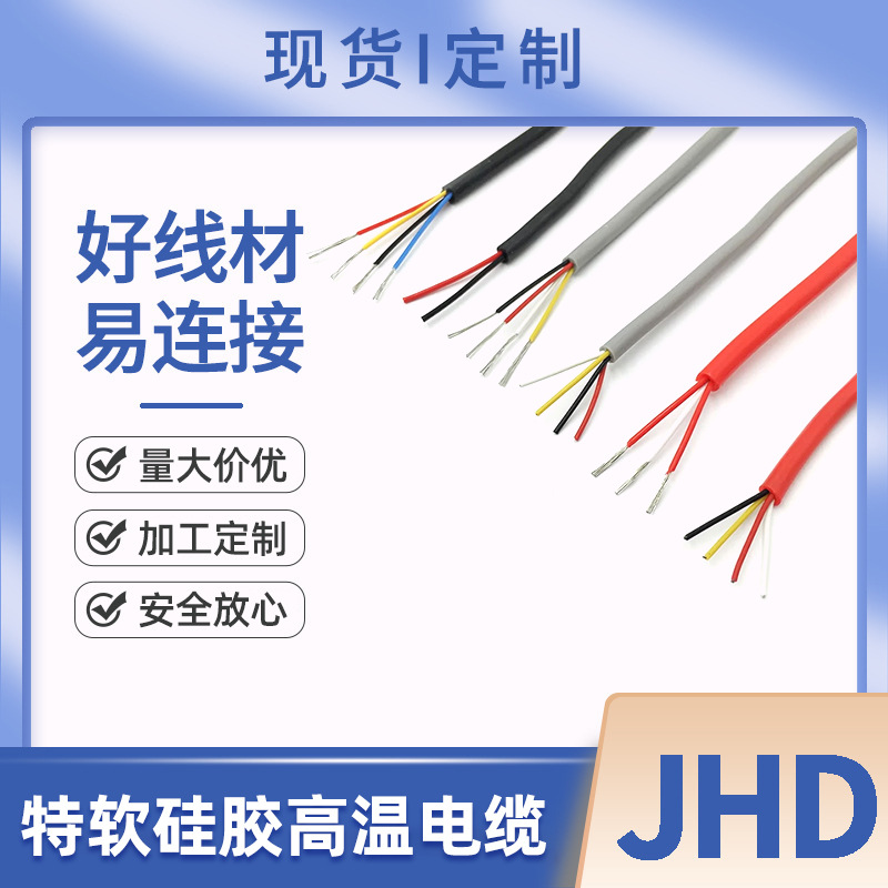 厂家供应特软硅胶高温电缆 耐高温200度硅胶护套2芯3芯4芯硅胶线 100米