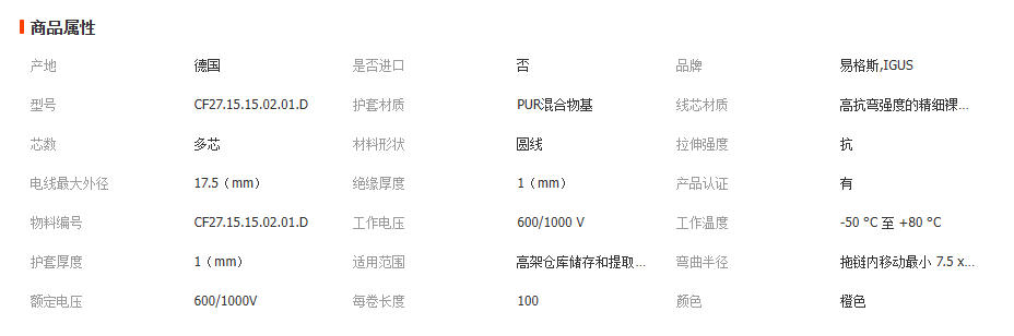 igus电缆易格斯电缆聚胺酯PUR,耐油 CF27.UL.D 10米