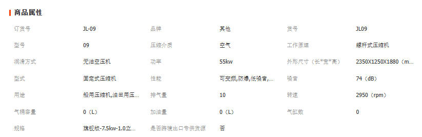 巨浪无油螺杆式空压机15/37/55KW工业级空气压缩机静音小型空压机 1台