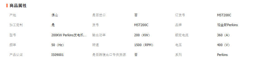 Perkins200KW帕金斯柴油发电机组开架式静音款户外电 源发电机 1个