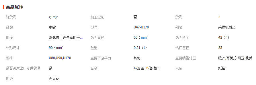 中骏批发采煤截齿U80U90 65盘35柄 洛锰硅合金 齿座 无火花 1只