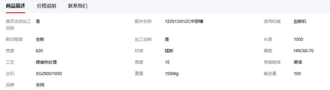 122S13/01ZC中部槽 SGZ800/1050刮板输送机连接槽 总长1.5米 1件
