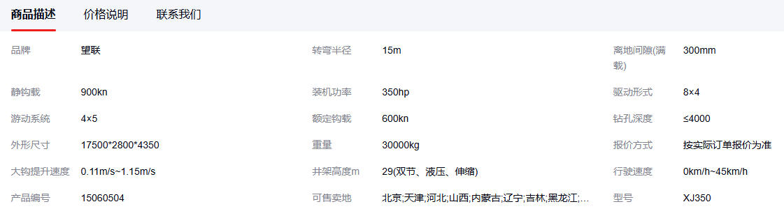 望联机械 作业XJ350修井机 API认证XJ350修井机石油机械 1台