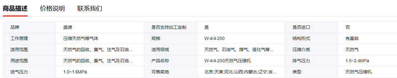 盛德W-4/4-250天然气压缩机定制液化气储气罐氢气 1台
