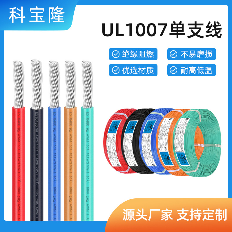 批发UL1007电子线16 22 24 26awg镀锡铜线束线材加工单芯连接电线 1卷