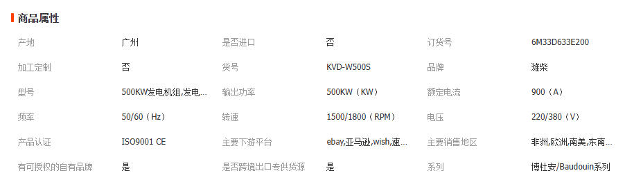 500kw博杜安Baudouin柴油发电机600kva潍柴工厂工业用静音发电机 1台