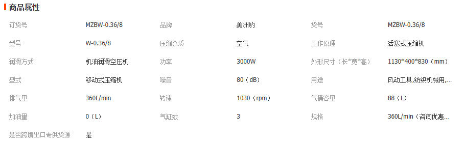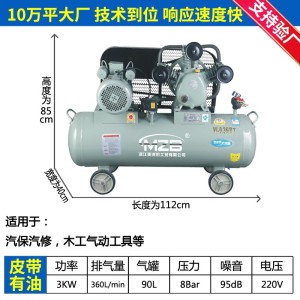 美洲豹工厂直销3kw移动皮带式空压机0.36/8活塞式汽修 家装出口 1台