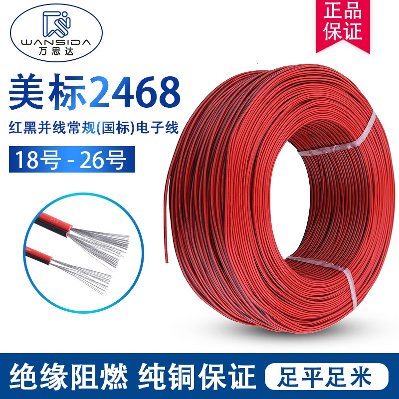 2468红黑双并线 26 24 22 20 18 16awg黑白竹节线橱 柜灯电源线 1卷