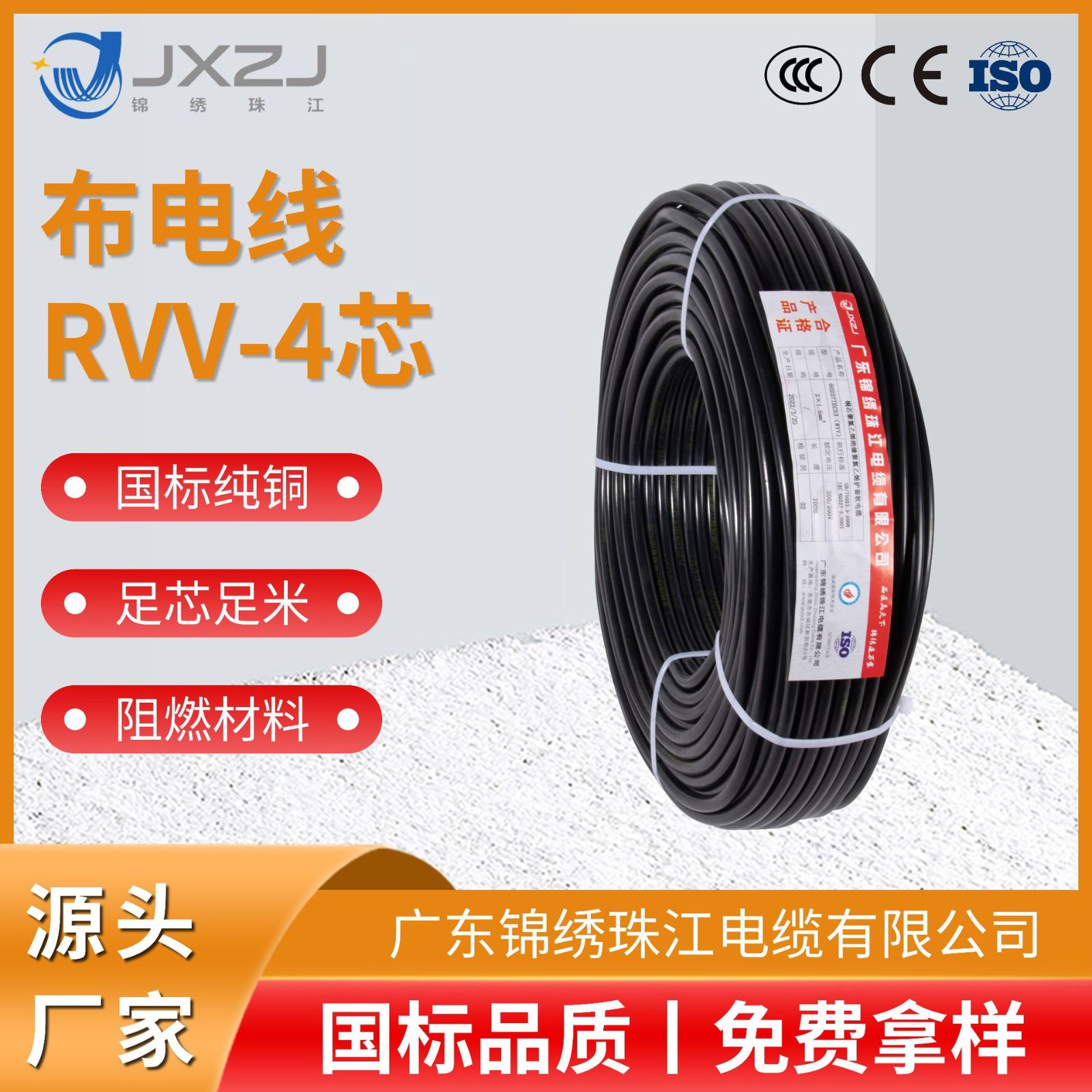 源头软线直销批发RVV-4芯电线电缆国标rvv软电线阻燃耐火家用电线 101卷