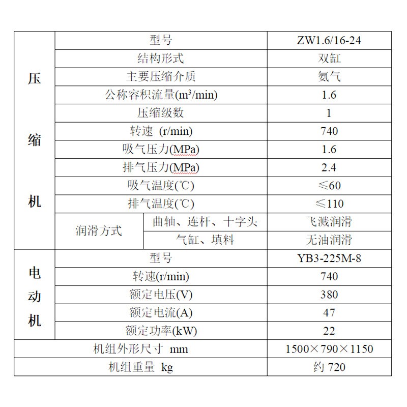 ZW1.6-16-24联轴器氨气压缩机活塞式压缩设备低噪音活塞式空压机 1件