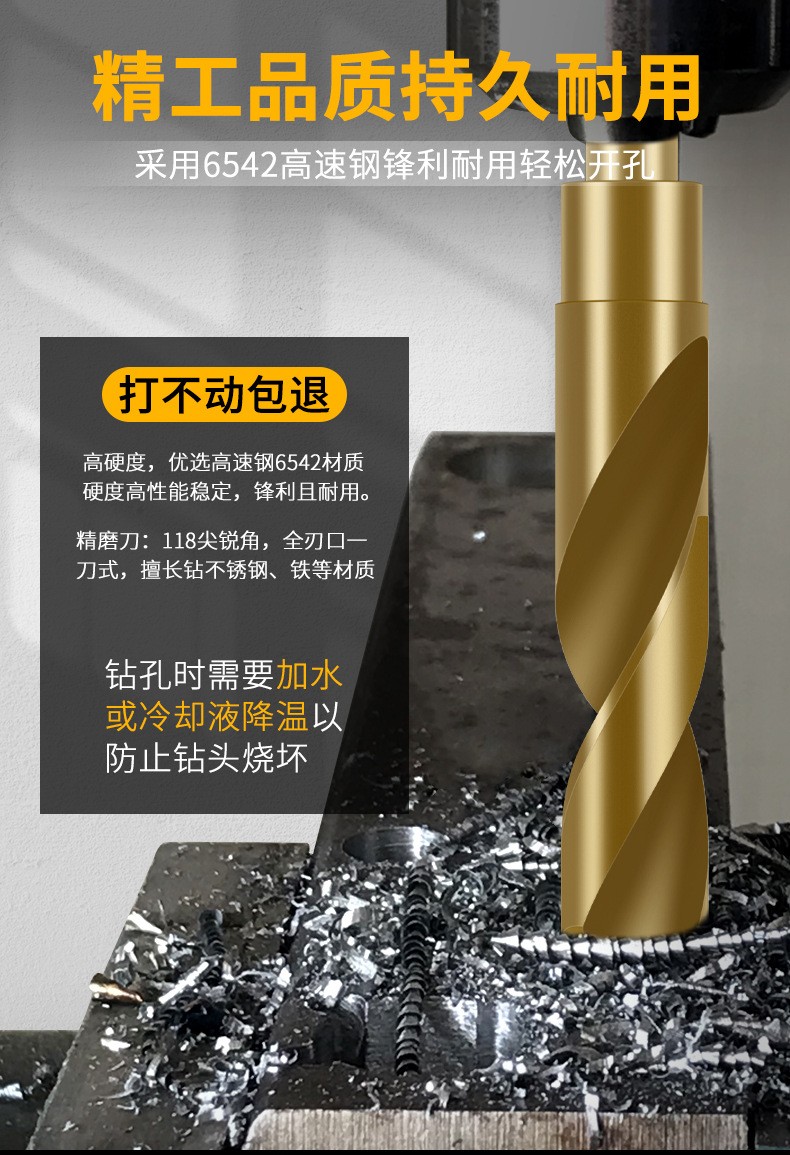 1/2小柄等柄麻花钻头6542高速钢不锈钢金属木工含钴钻开孔器扩孔 1支