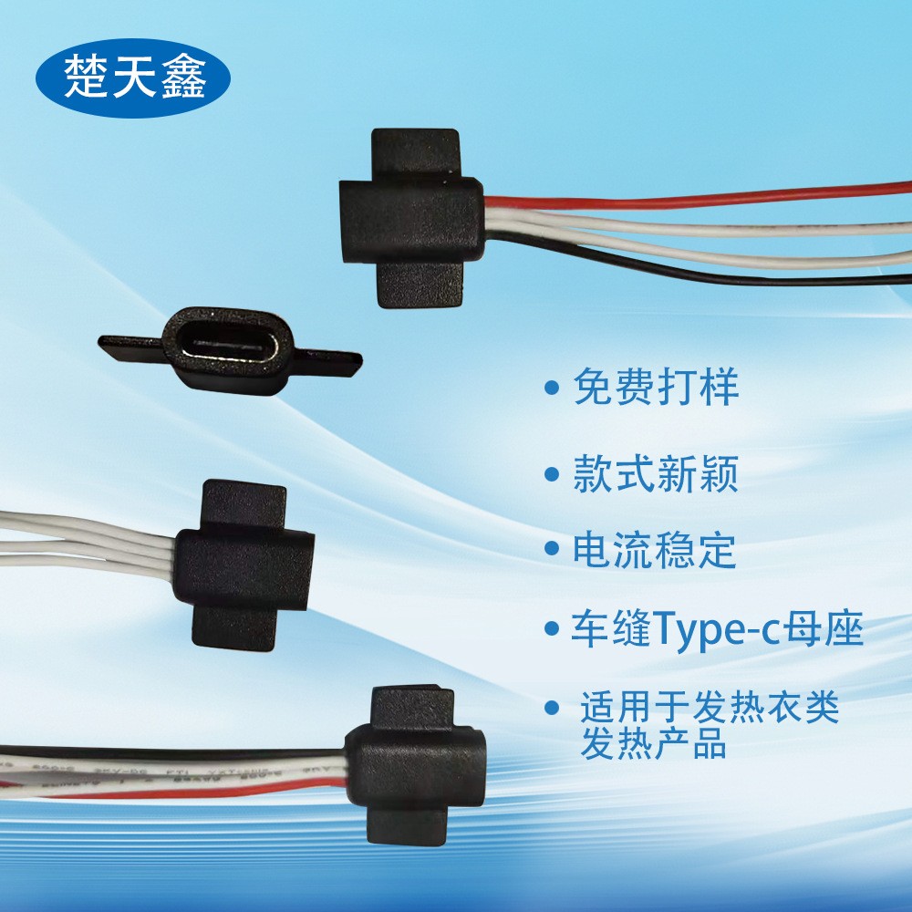 Type-c车缝母座飞机扣石墨烯服饰四芯加热线材连接器智能穿戴专用 1000条