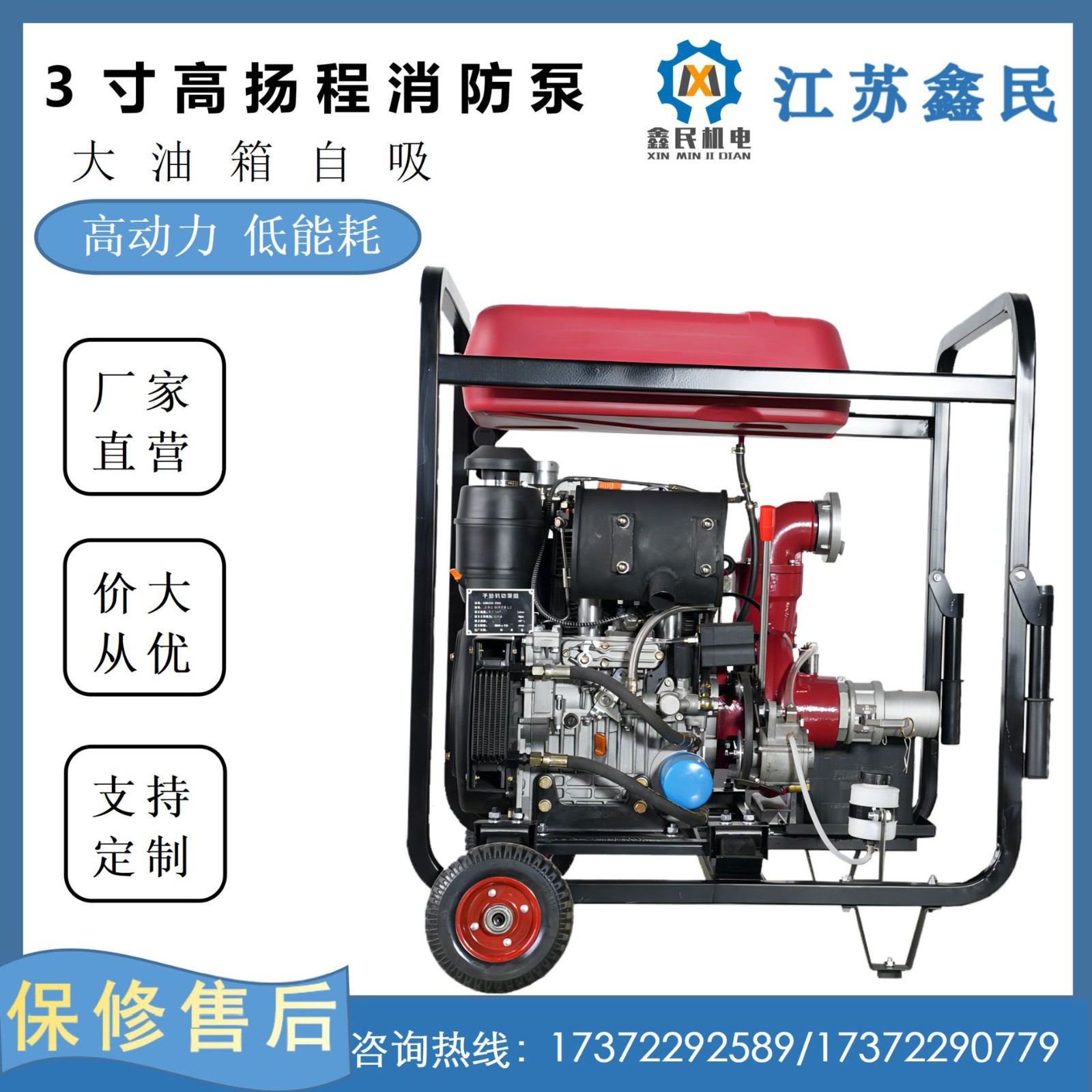 柴油机水泵3寸高扬程自吸消防泵14kw柴油机自吸式 1个