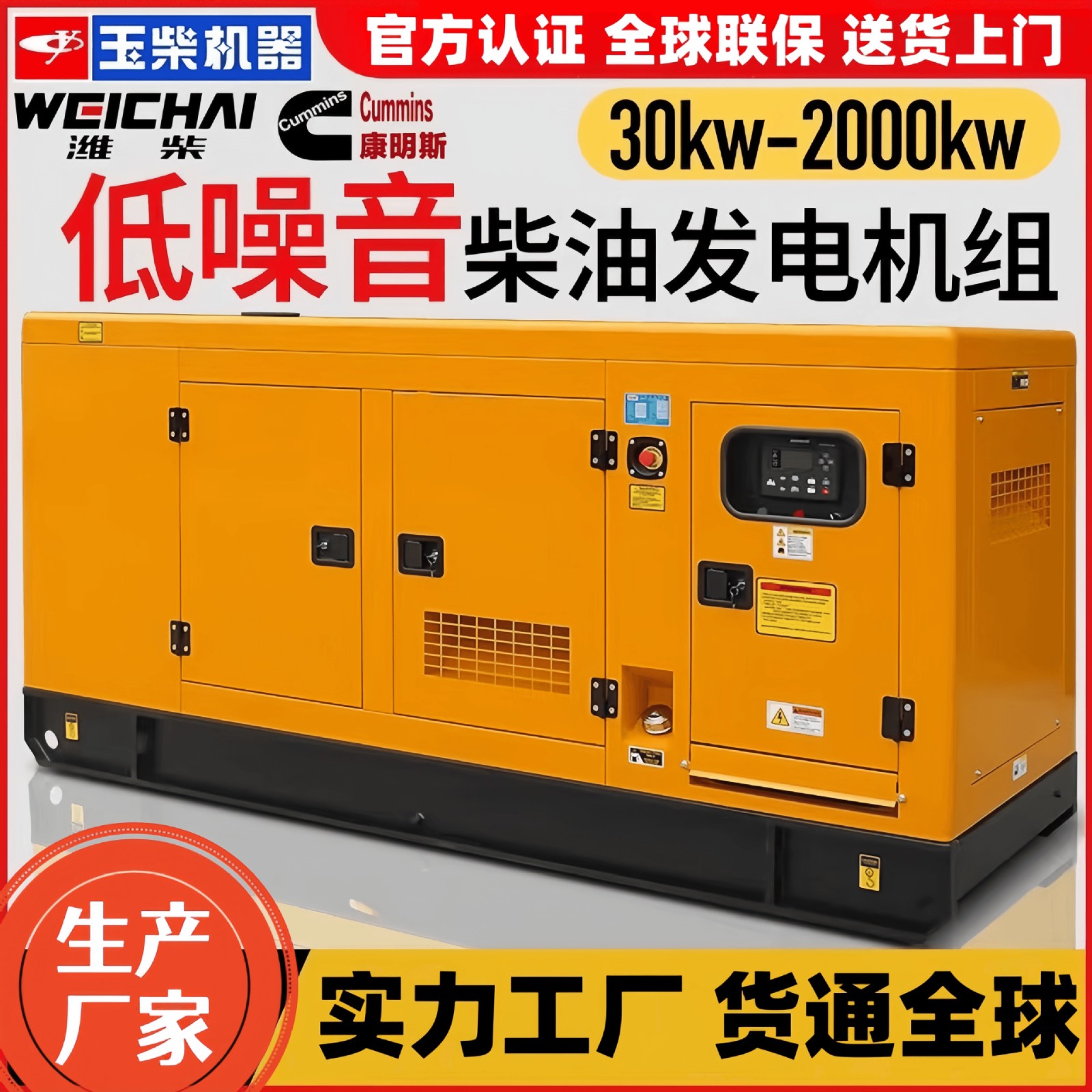 跨境康明斯 玉柴潍柴 柴油发电机组 静音发电机 广州佛 山工厂现货 1个