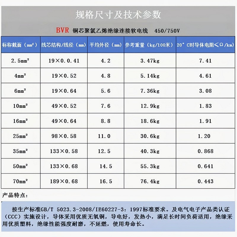 上海起帆电缆ZBRV/BVR电线 50 70 95 120无氧铜绝缘导线电源线 1卷