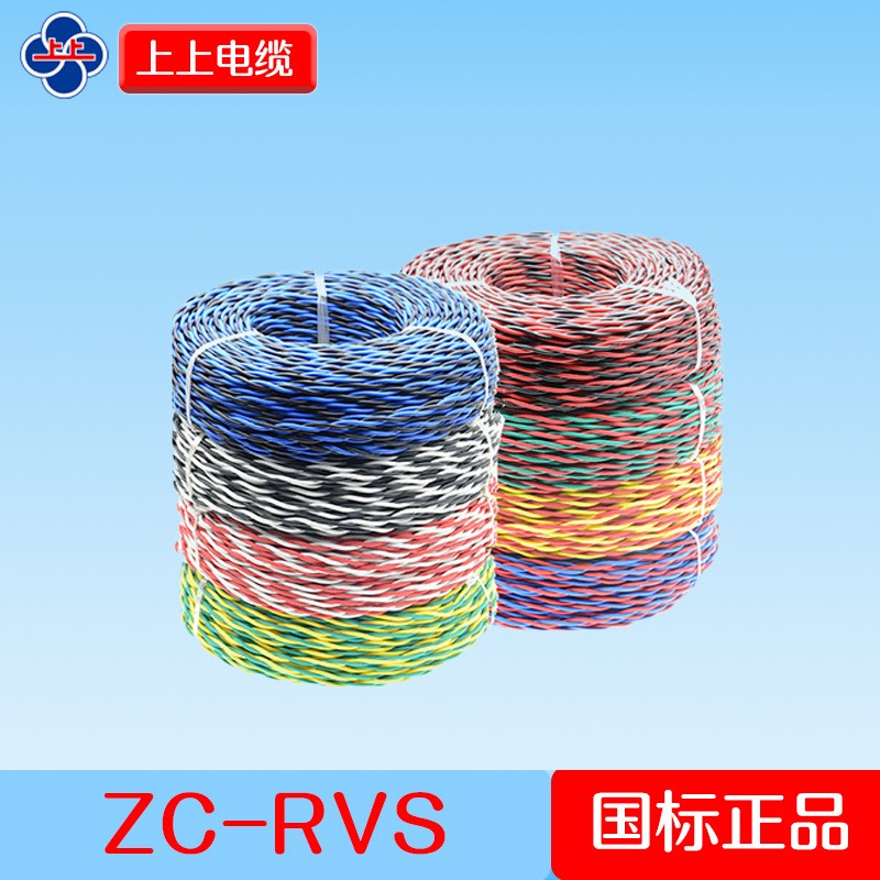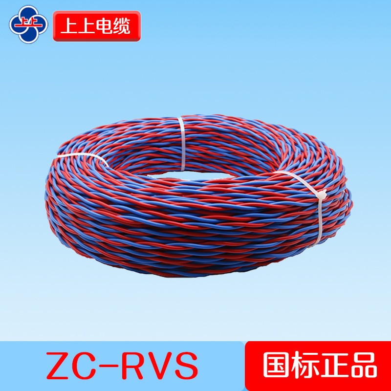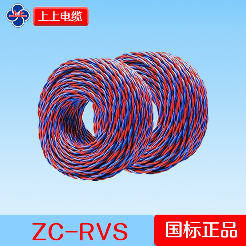 上上电缆 铜芯电线软线 ZC-RVS 2*1mm²双绞消防专用 100米