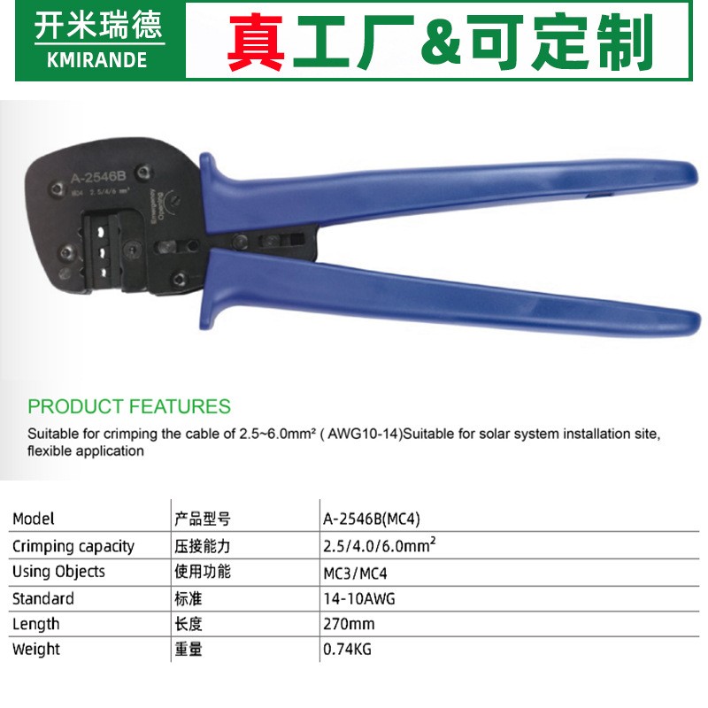 MC4光伏压线钳A-2546B光伏端子压线钳太阳能插头电缆连接器压接钳 1把