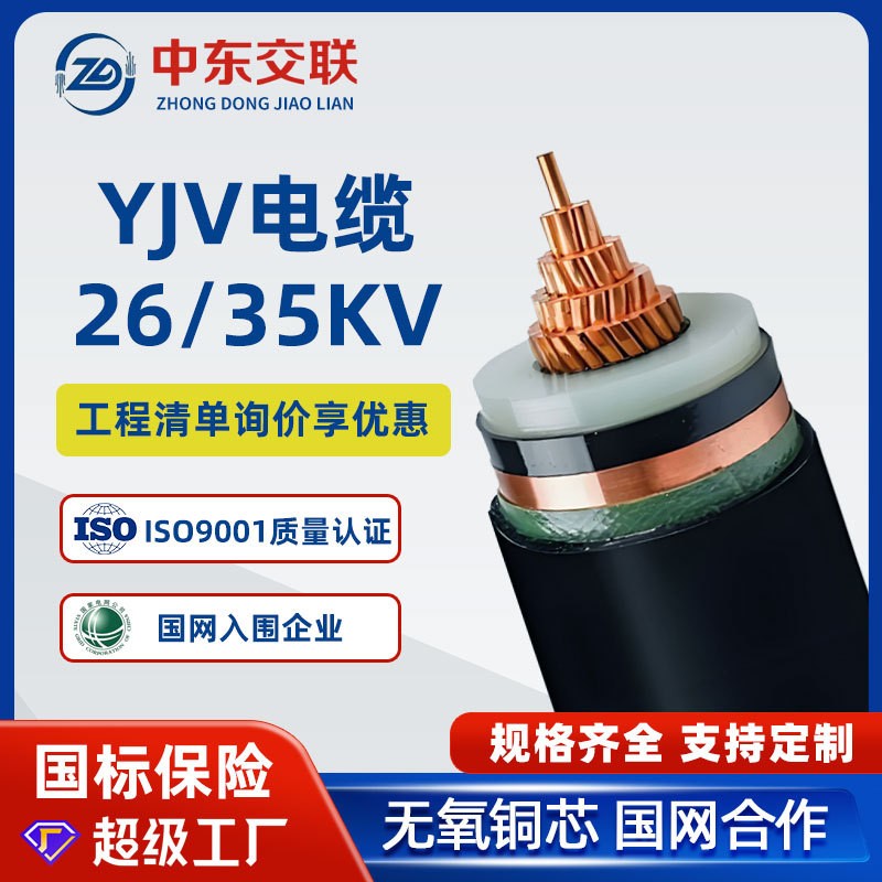 YJV铜芯电线电缆1芯*50/70/95/120/150平方26/35KV单铜芯高 压电缆 1米