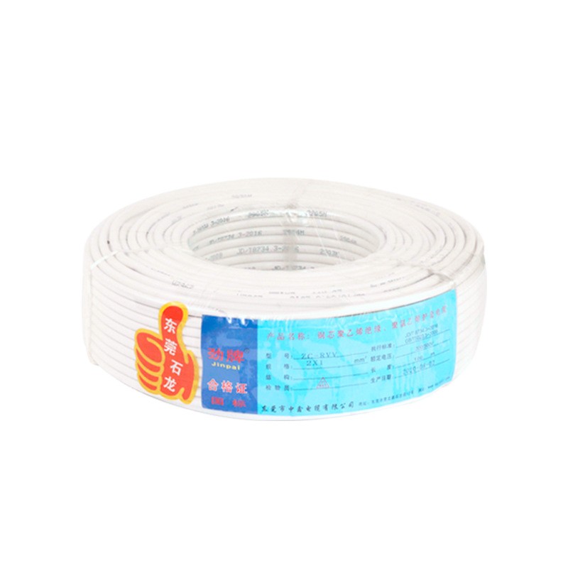 国标三芯电源线纯铜RVV白色电缆线护套线家用1.5 2.5 平方电线电缆 1卷