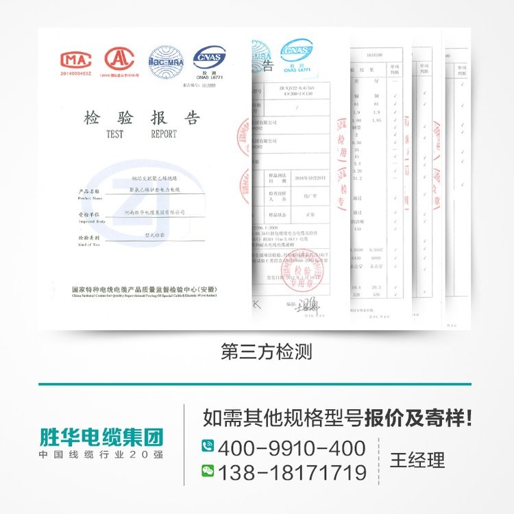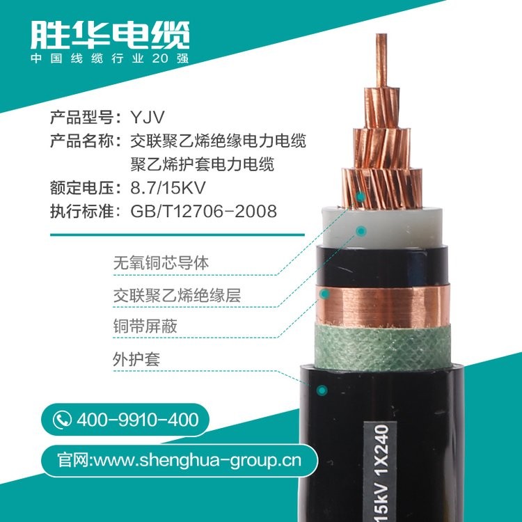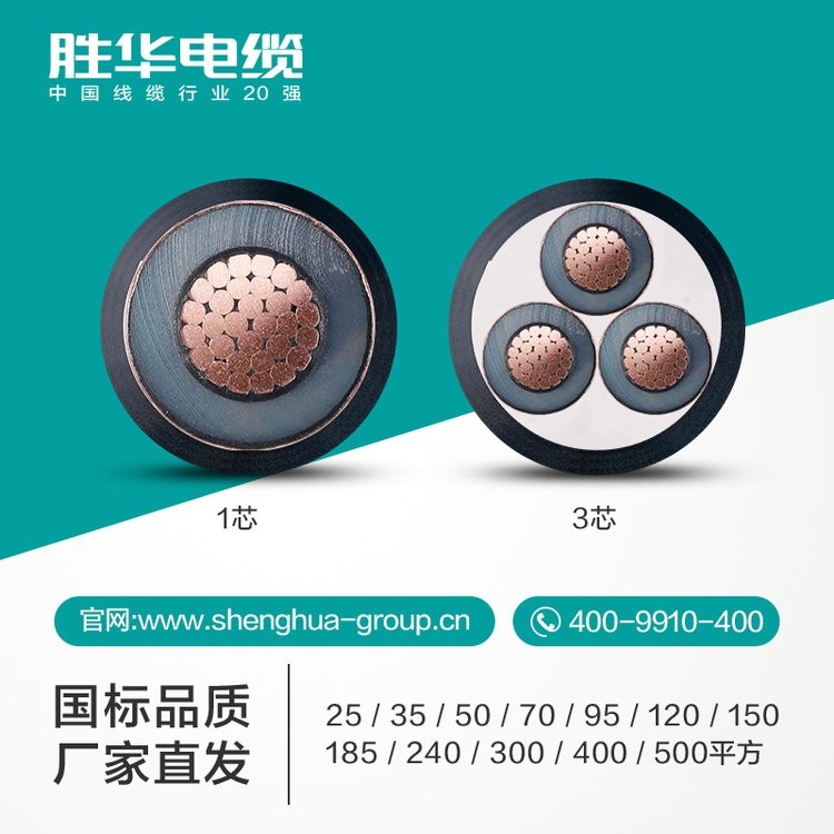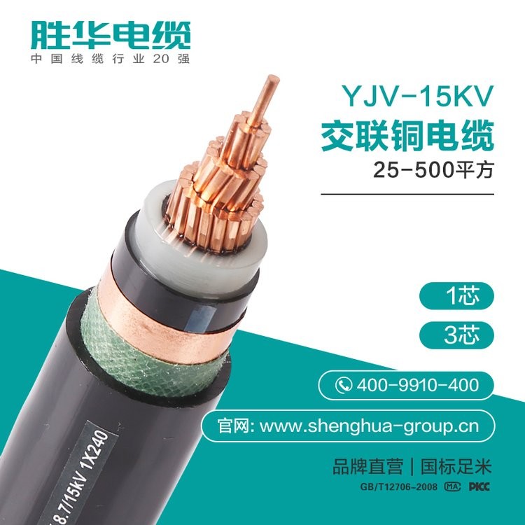 胜华电缆 YJV-15KV中高压交联铜电缆 50-500平方 1/3芯 国标 1米