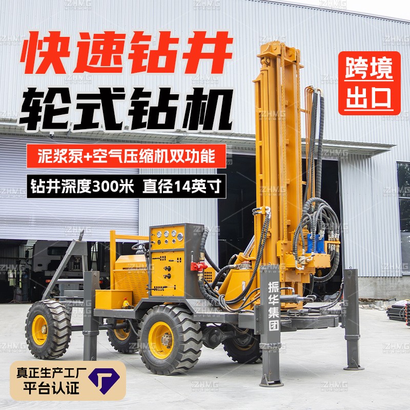 轮式气动水井钻机200米 泥浆泵一体打井设备 300米轮式牵 引钻井机 1件