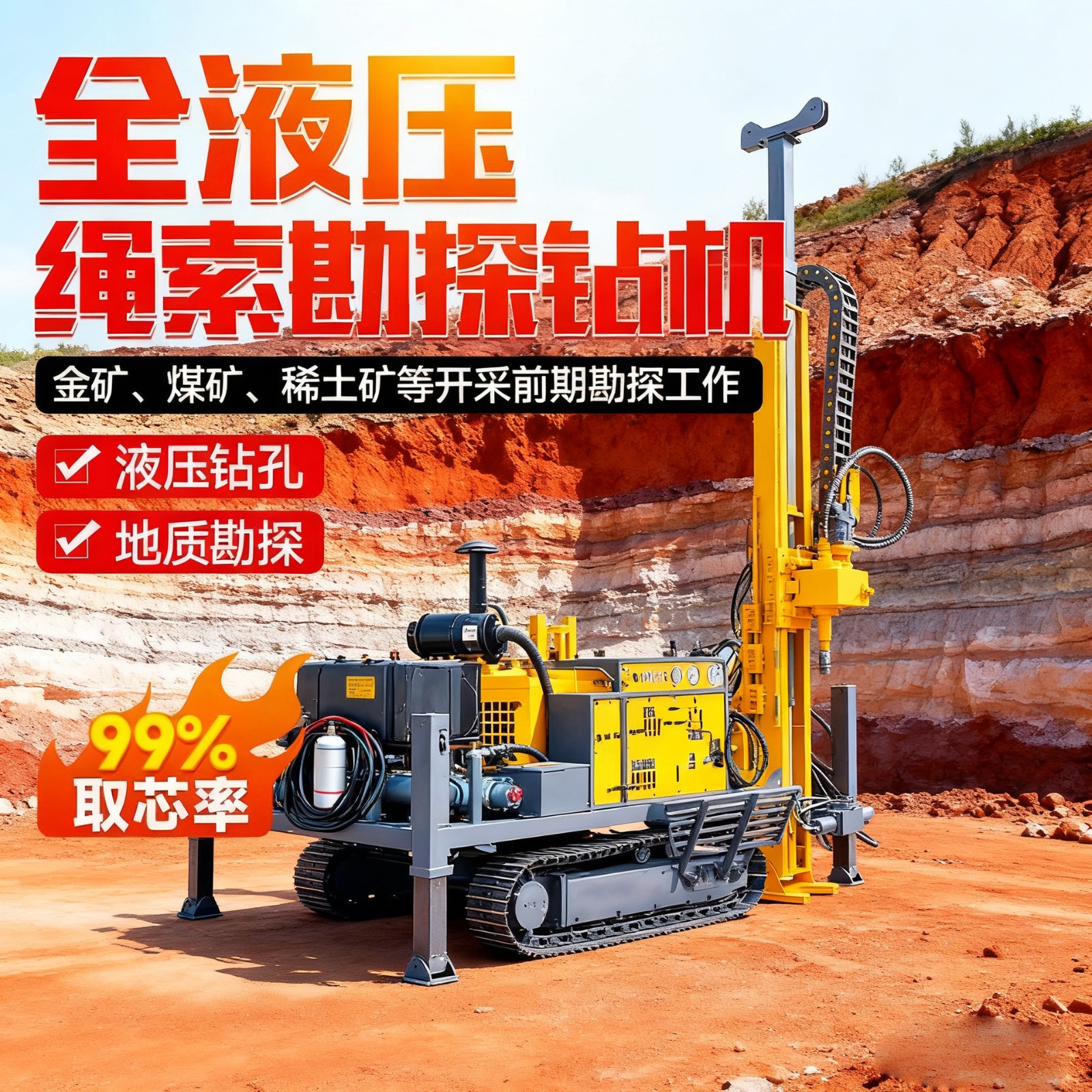 履带式绳索勘探取芯钻机800米液压岩心金属矿山岩芯取样出口 1件